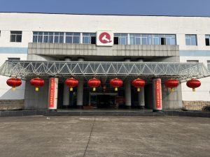 處的工作人員,在廠區(qū)行政大樓門(mén)口掛起大紅燈籠、系上中國(guó)結(jié),并